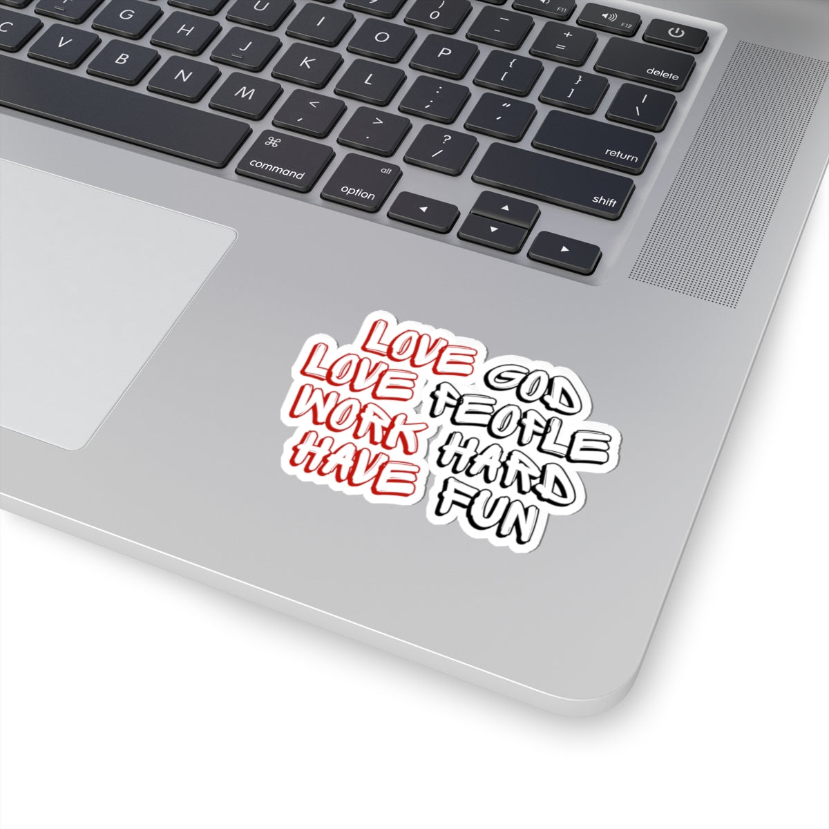 Kiss-Cut Vinyl Sticker - "Love God, Love People, Work Hard, Have fun"